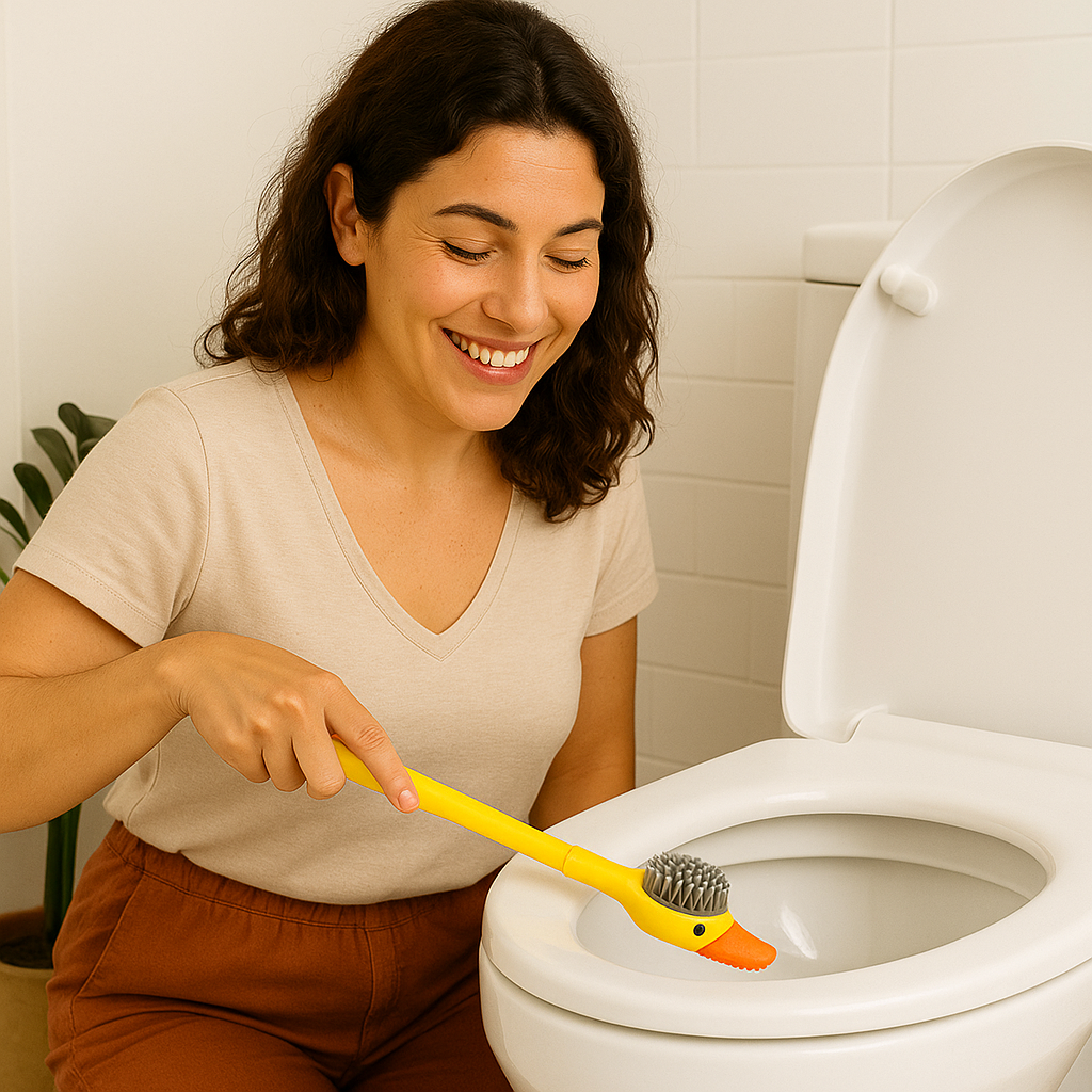 Conjunto de escova de banheiro com cabo longo em forma de pato, com suporte de parede sem necessidade de perfuração (LTT)