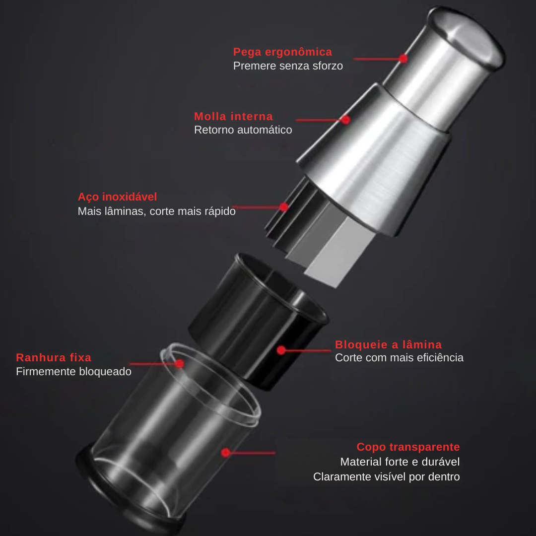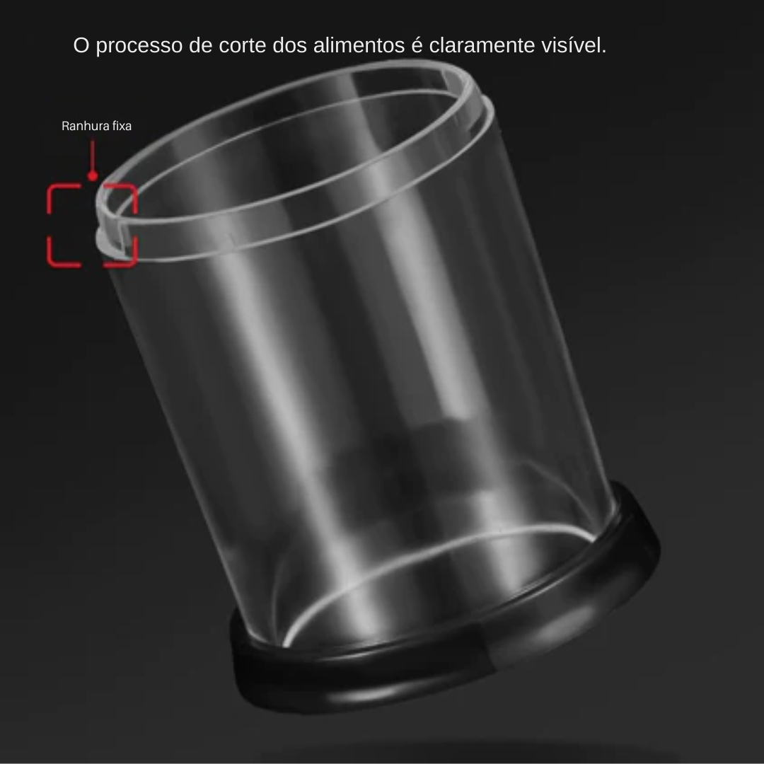 - Material: Copo PP transparente, lâminas e prensador em aço inoxidável, fecho de lâmina em ABS