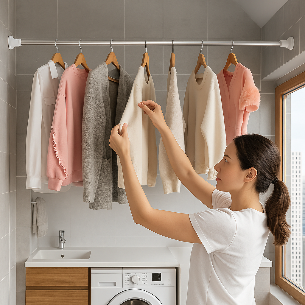 Barra telescópica ajustável e multifuncional sem perfuração, que se estende até 160 cm (NEW)