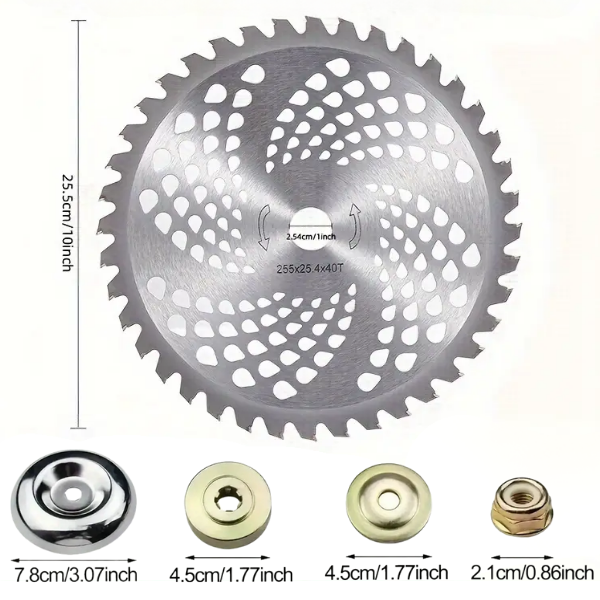 40 dentes afiados com precisão Alta resistência a impactos Durabilidade superior Corta até 100 m² em minutos