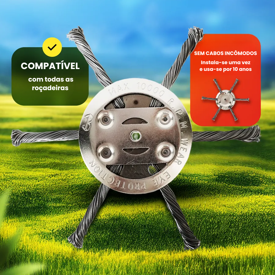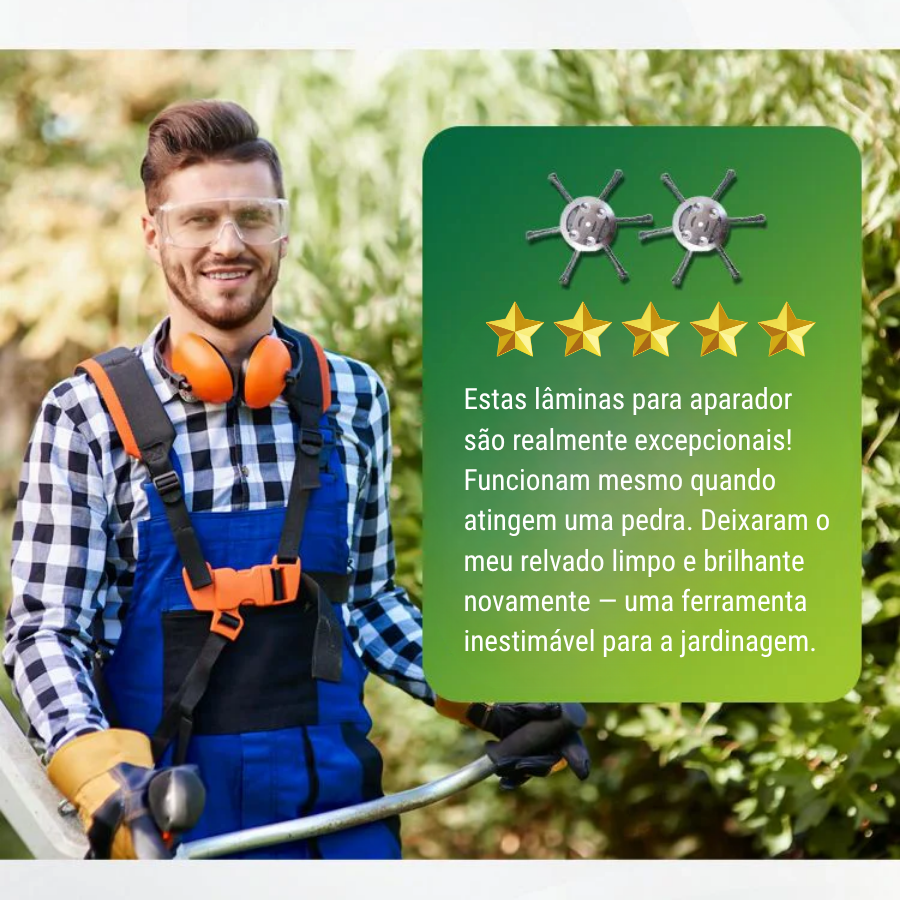 🇵🇹 A cabeça do cortador de relva possui 6 lâminas em aço inoxidável